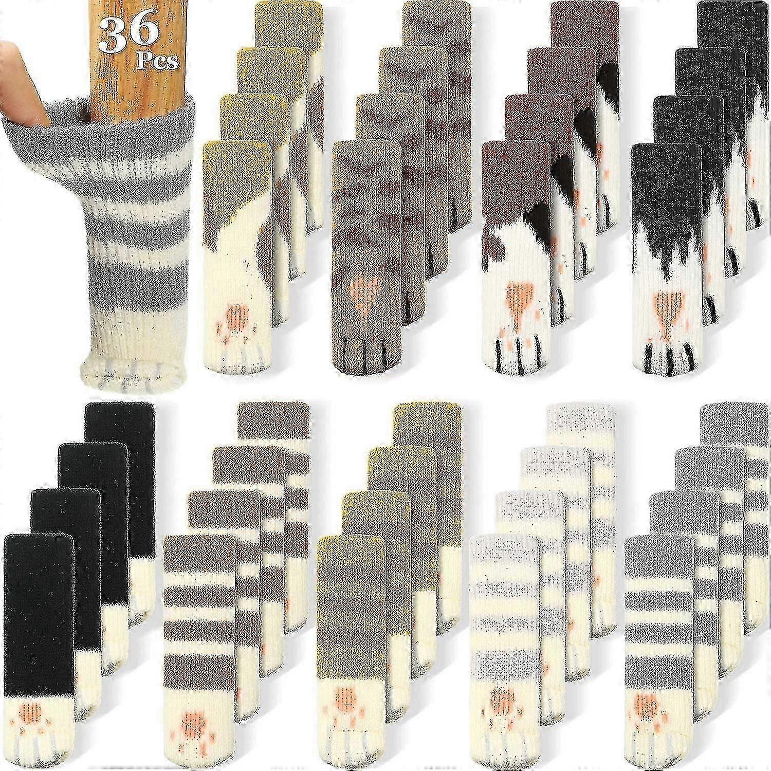 36 Pieces (9 Sets) Cat Chair Socks Cat Paw Chair Leg Socks Cat Furniture Socks Knitted Furniture Socks Anti-slip Chair Socks For Table Legs Hardwood F
