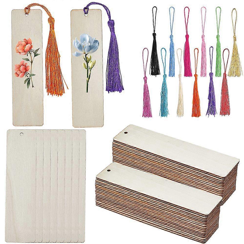 36Pcs 12 Colors Polyester Tassel Decorations Pendant Decorations with 36Pcs DIY Unfinished Rectangle Wood Big Pendants Mixed Color 70~120x6mm