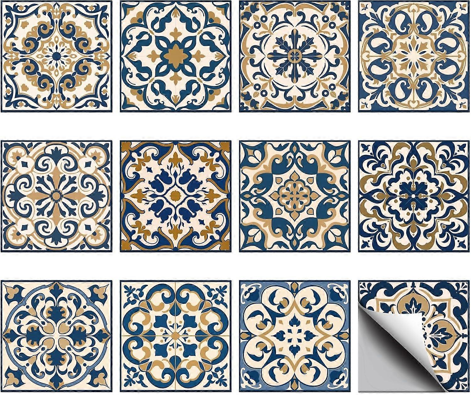 36Pcs 12Styles Moroccan Mandala Wall Tile Decals Peel and Stick Tile Stickers Waterproof Self-Adhesive Backsplash Stickers for Kitchen Bathroom Decora