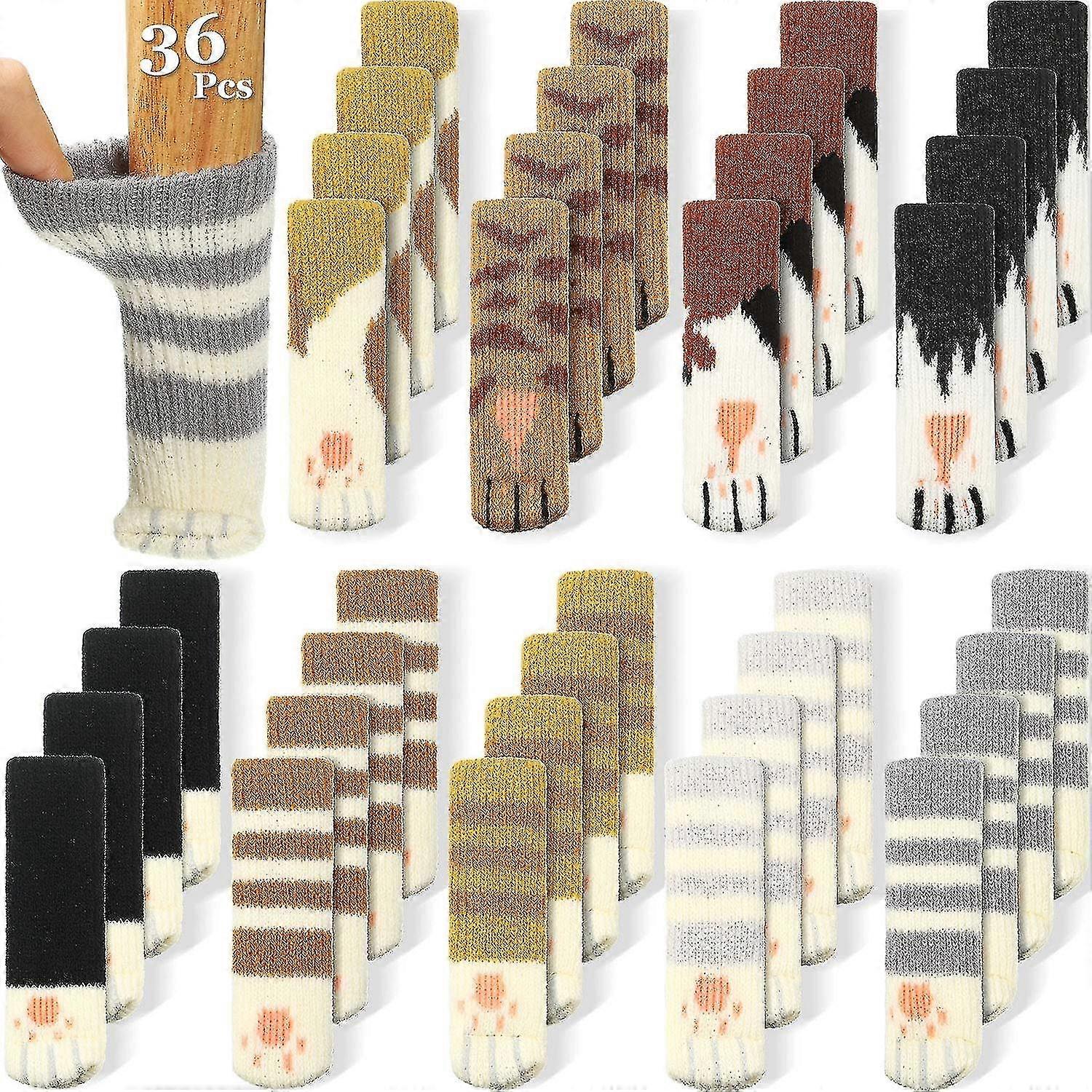 36 Pieces (9 Sets) Cat Chair Socks Cat Paw Chair Leg Socks Cat Furniture Socks Knitted Furniture Soc