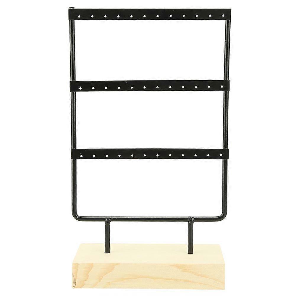36 Holes Metal Jewelry Storage Rack Display Stand Earrings Necklace Organizer with Wood BaseBlack