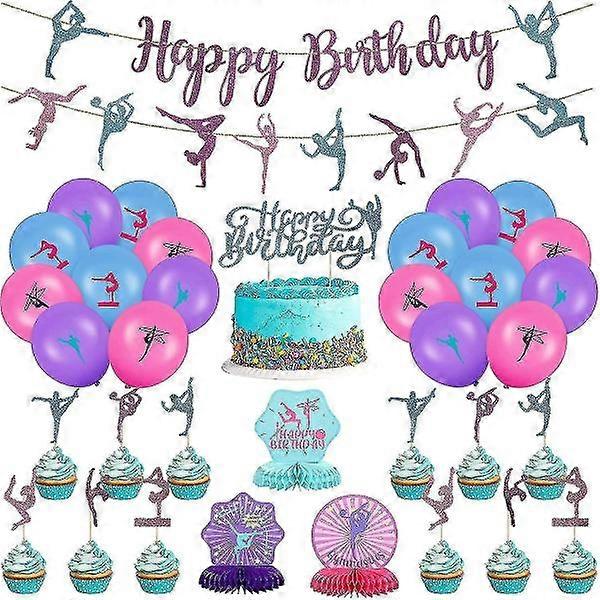 36 Pieces Gymnastics Party Supplies Decoration 2 Gymnastics Birthday Banner 3 Table Honeycomb Center