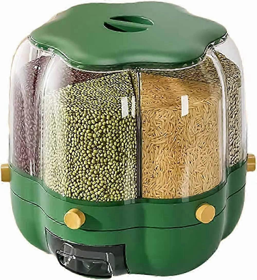 360° Rotating 6-Grid Rice Dispenser Transparent Food Storage Container for Home