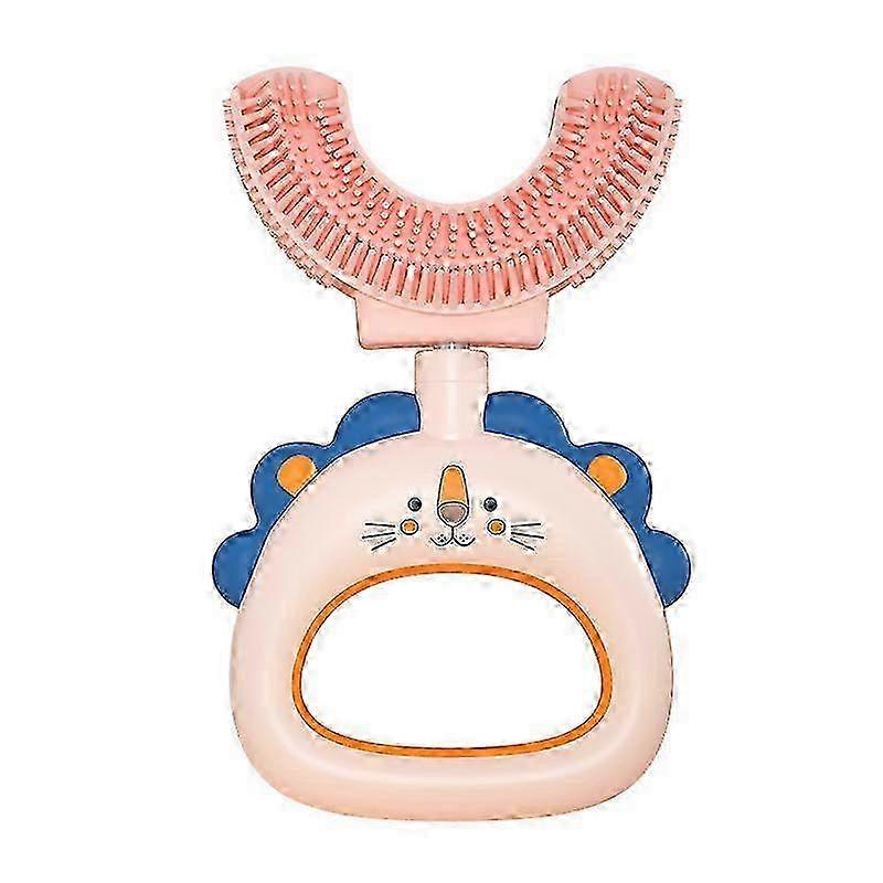 360 Oral Massage U Shaped Toothbrush, Food Grade Silicone Bristles for 7-14 year childpink