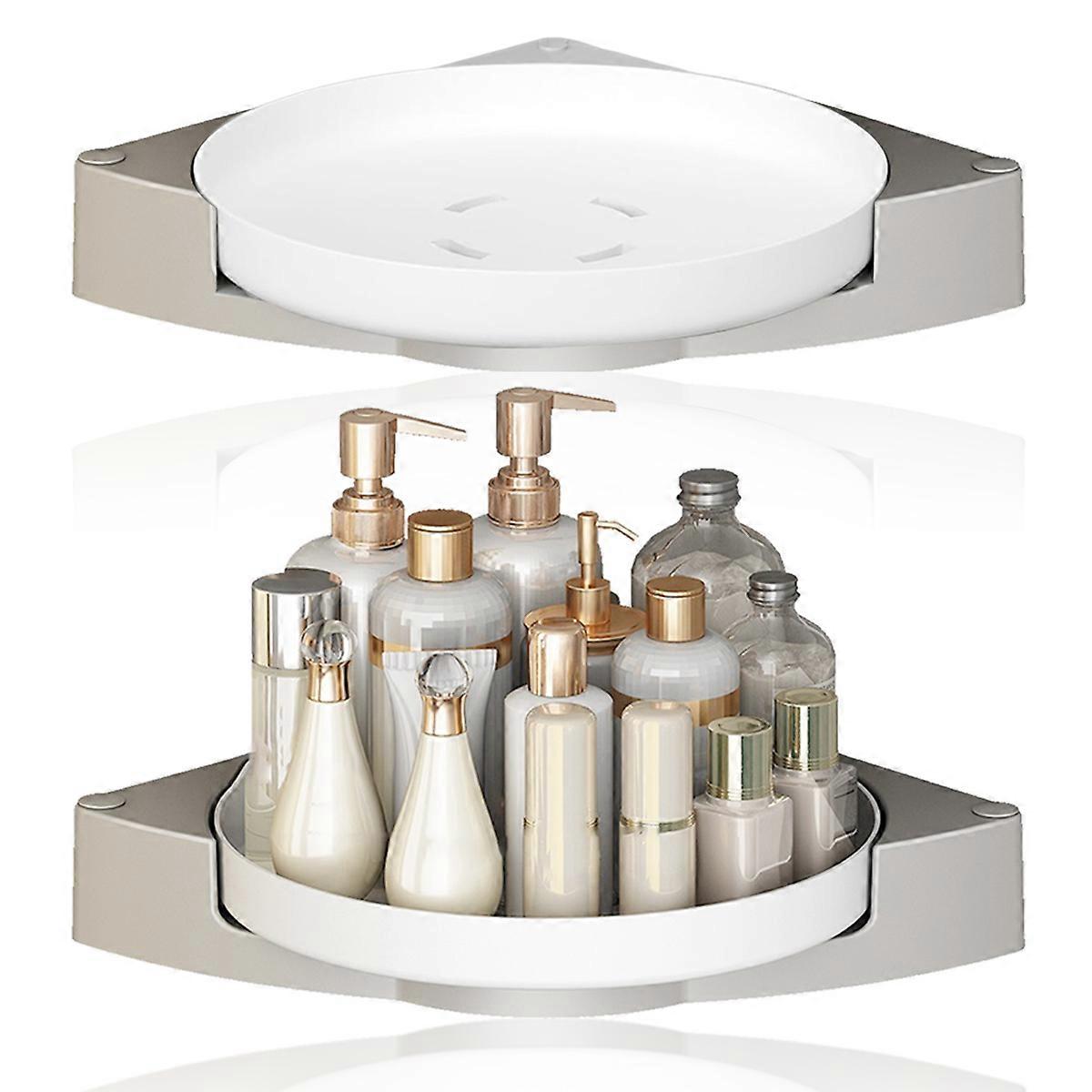 360 Rotate Shower Organizer Shelves, 2 Pack Shower Turntable for Bathroom Storage, No Drilling Corner Shower Shelf Rack for Bathroom, Dorm and Kitche