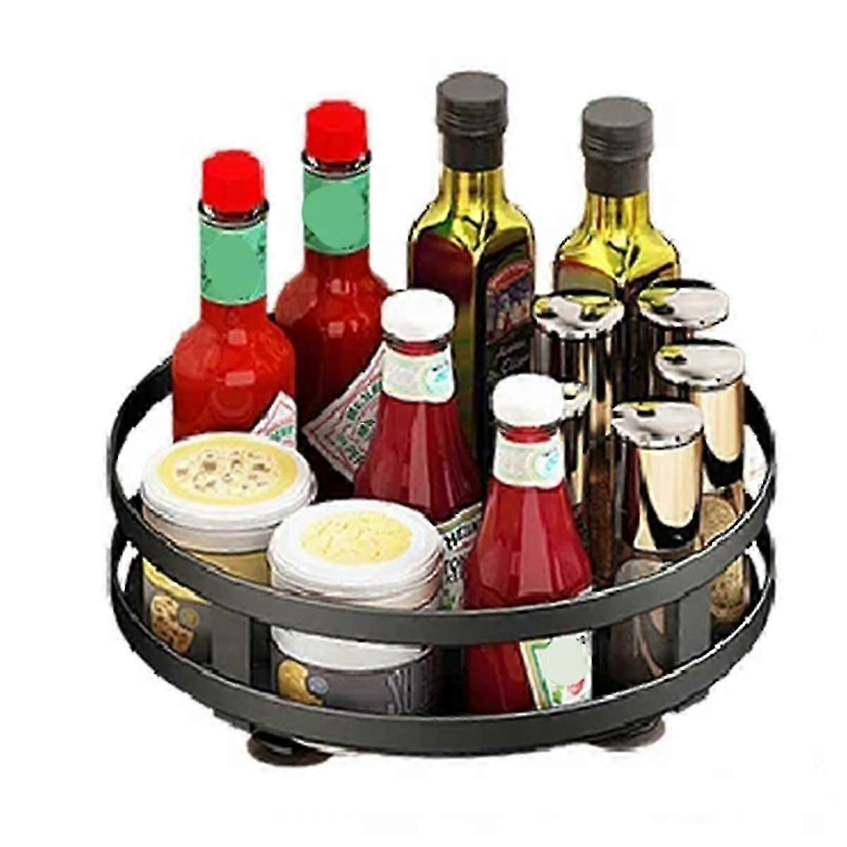 360-Degree Rotating Non-Slip Carbon Steel Seasoning Rack for Kitchen Storage