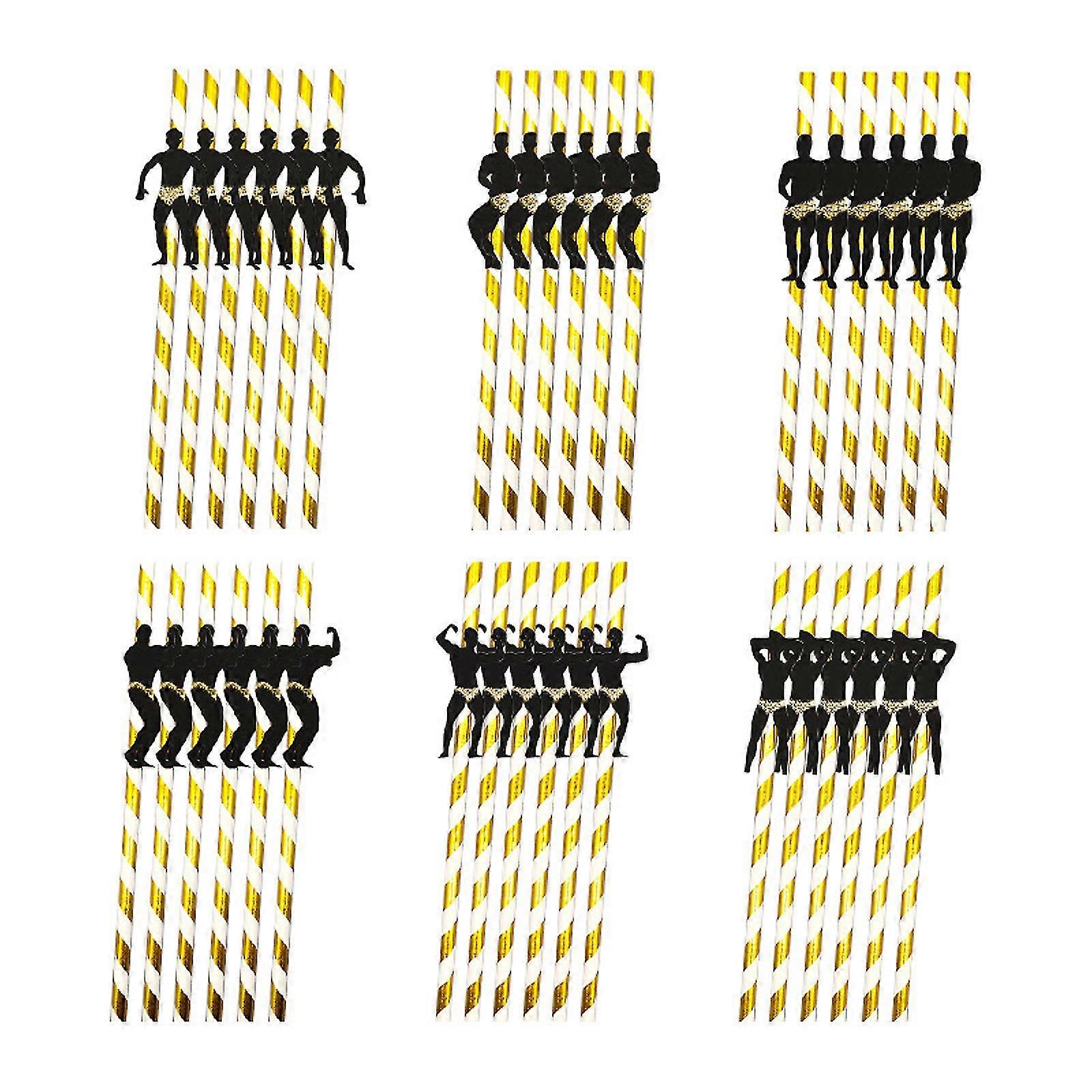 36pc Disposable Drink Dessert Decorative Straws Bodybuilding Pattern Paper Straw
