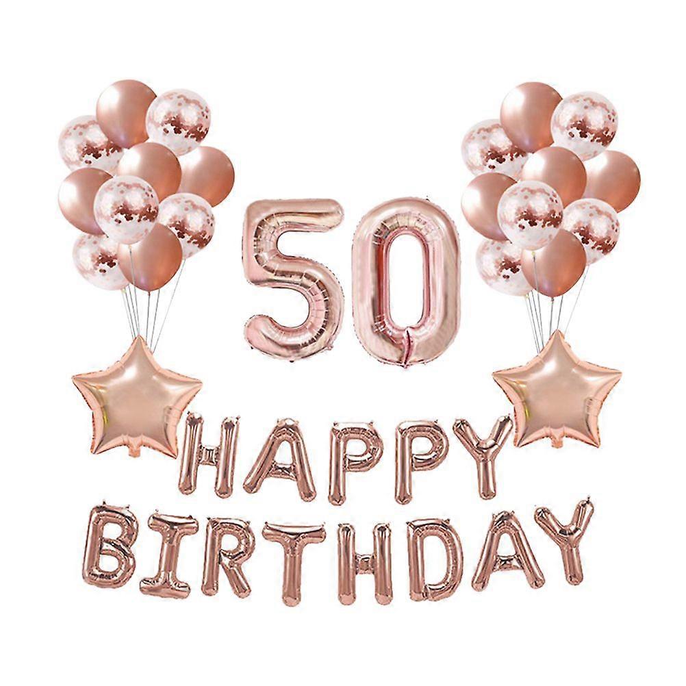 37 Pcs 50 Years Old Balloons Rose Gold Decorative Balloons Set Natural Latex Aluminum Film Sequins Balloons for Birthday Party