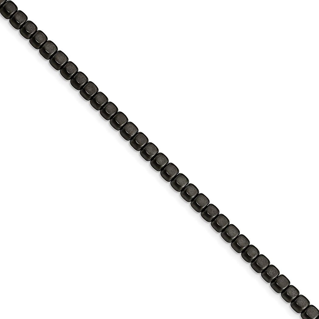 3.75mm Stainless Steel Brushed and Polished Square Hematite Beaded Bracelet With 1.25 Inch Extension 7 Inch Link-Bracele