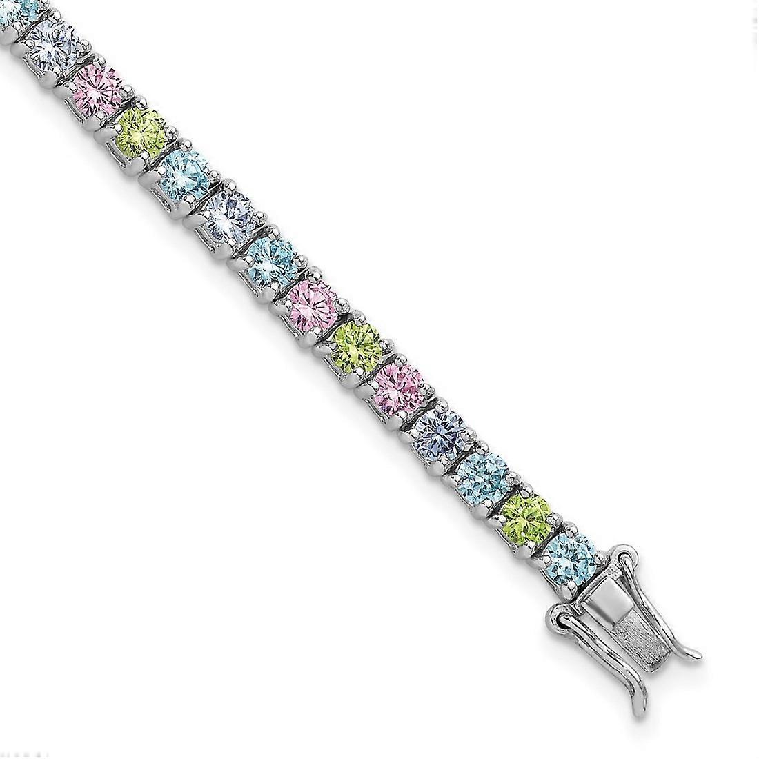 3.7mm 925 Sterling Silver Rhodium Plated Multi Color Cubic Zirconia Bracelet 7.25 Inch Link-Bracelet for Women