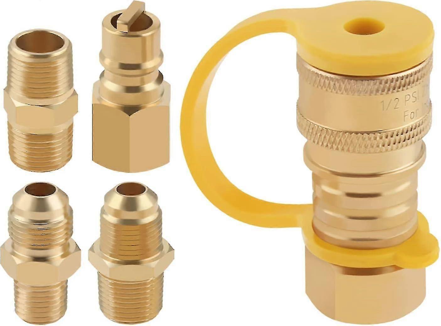 3/8inch Natural Gas Quick Connect Fittings, Propane Gas Grill Quick Connector Adapter Kit, Lp Gas Propane Hose Quick Disconnect Set, Brass Tube Fittin