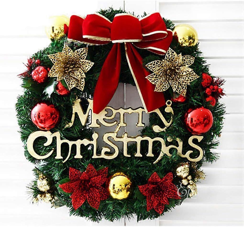 38cm Merry Christmas Wreath Xmas Festive Decorated Garland Door Wall Window Hanging Decoration Hoop Artificial Pine Flower Pendant Ornament for Home C