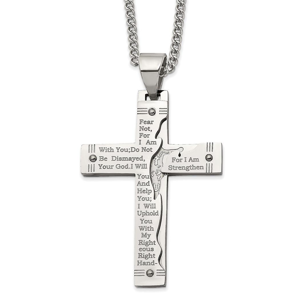 38mm Stainless Steel Polished Etched Isaiah 41:10 Prayer Religious Faith Cross Pendant a Curb Chain Necklace 24 Inch Cha