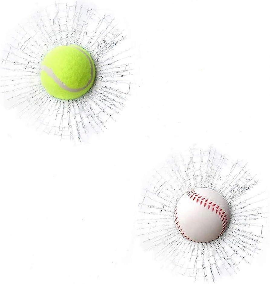 3D Prank Tricky Creative Glass Window Stickers Simulation Tennis Break Glass Car Window Sticker, Baseball Broken Glass Stickers,2Pcs