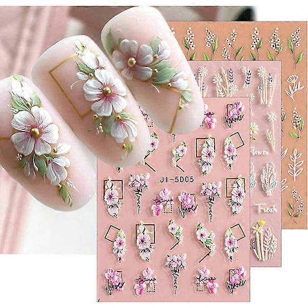 3D Embossed Flower Petals Nail Art Stickers Decals 3 Sheets 5D Self-adhesive Pegatinas Uñas Summer Nail Products Nail Art Design Decoration Accessorie