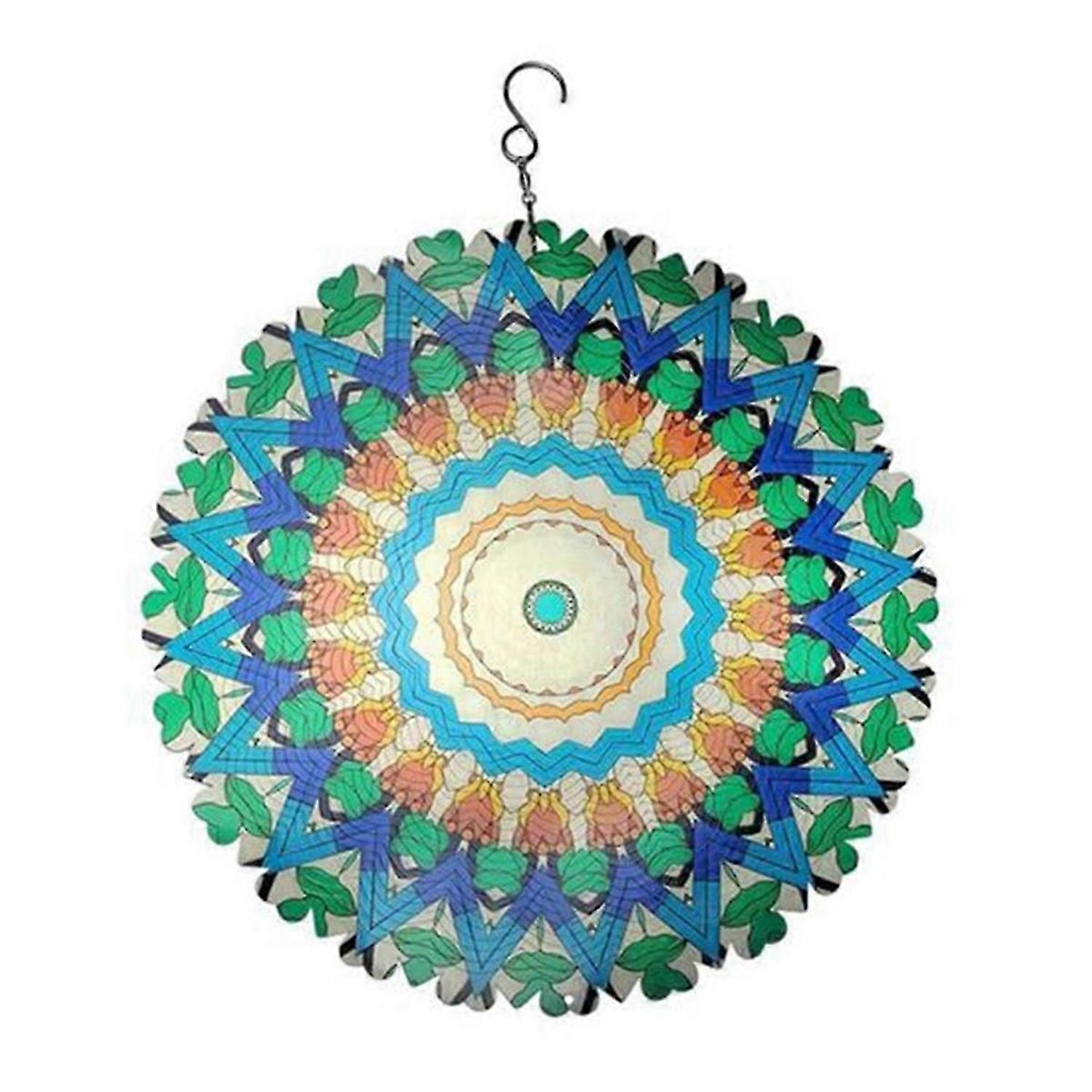3D Colorful Iron Wind Chime, Mandala Pattern 3D Rotating, Wall Hanging Decorative Art Windmill Home Decoration A