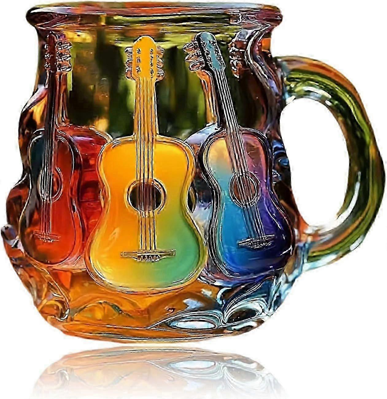 3D Guitar Coffee Mug, Colorful Musical Design Glass Cup, Music Lover Collectible Gift 3D Guitar Coffee Mug