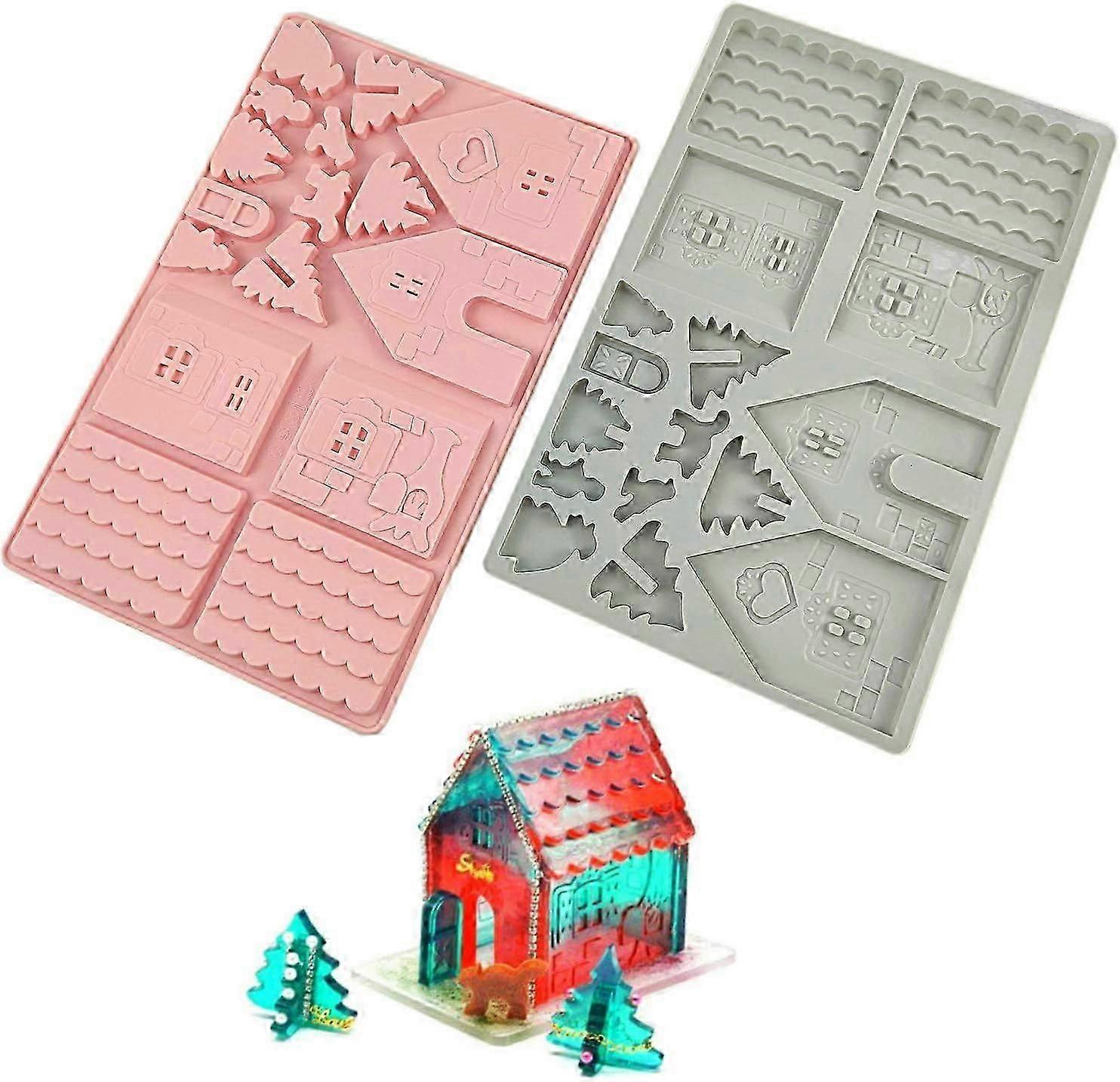 3D Christmas House Silicone Molds set of 2, Gingerbread House Silicone Resin Molds, Castle Casting DIY Resin Silicone Molds for Christmas Decoration (