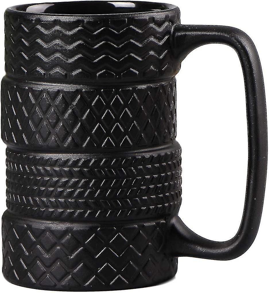 Features - Black tire shape. Capacity and dimensions - approx. 14 oz (400ml), 4.92 inches * 3.15 inches (H x D) Note - Not Dishwasher and Microwaveable Material - High quality ceramic mug with elegant bright glaze, healthy and eco-friendly. PERFECT GIFT - Safely packaged, perfect for coffee and tea drinkers as well as car fans and enthusiasts