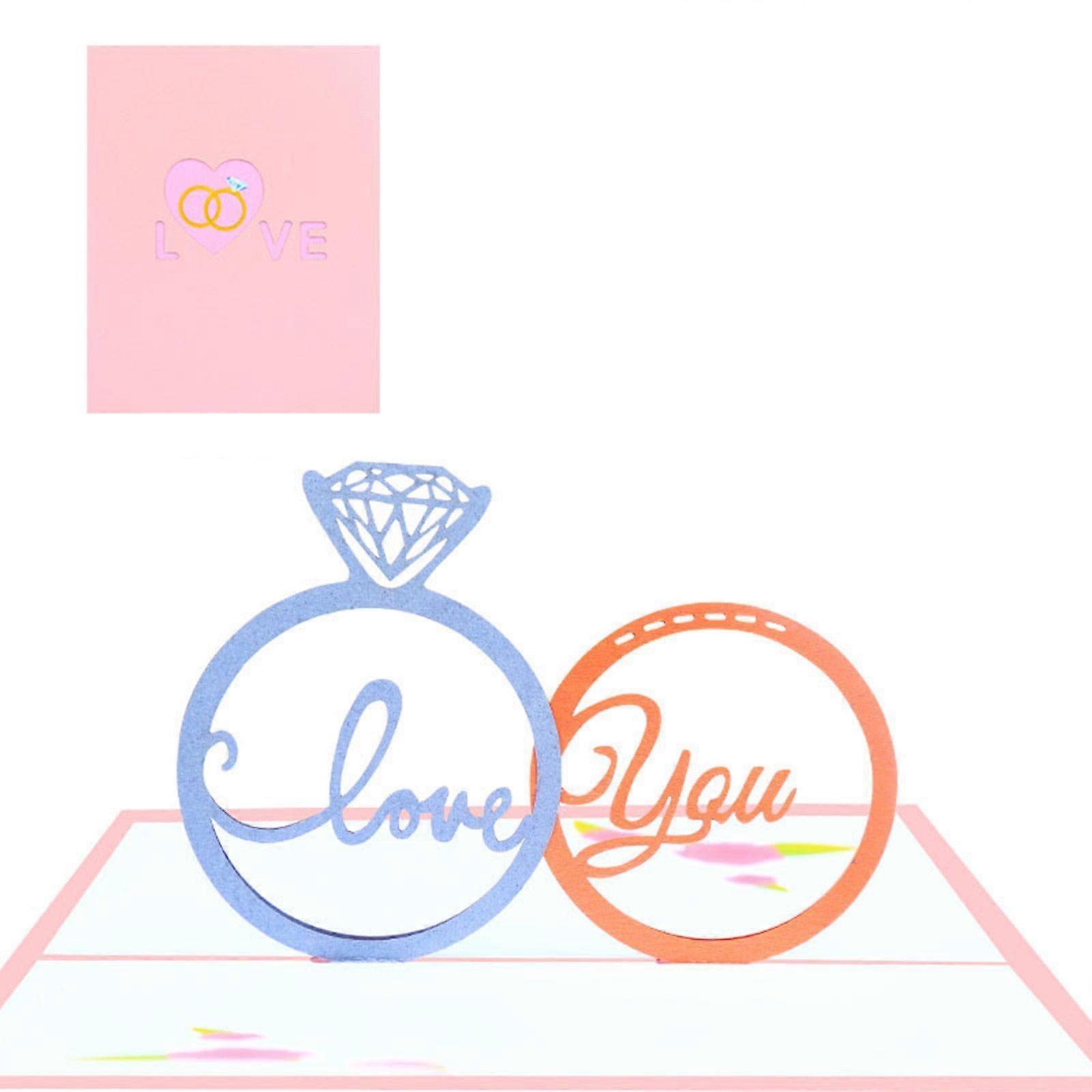 3D Diamond Ring Paper Card Valentine's Day Love Blessing Couple Cards Supplies for Wedding Anniversary Party Invitation Cards Proposal Gift