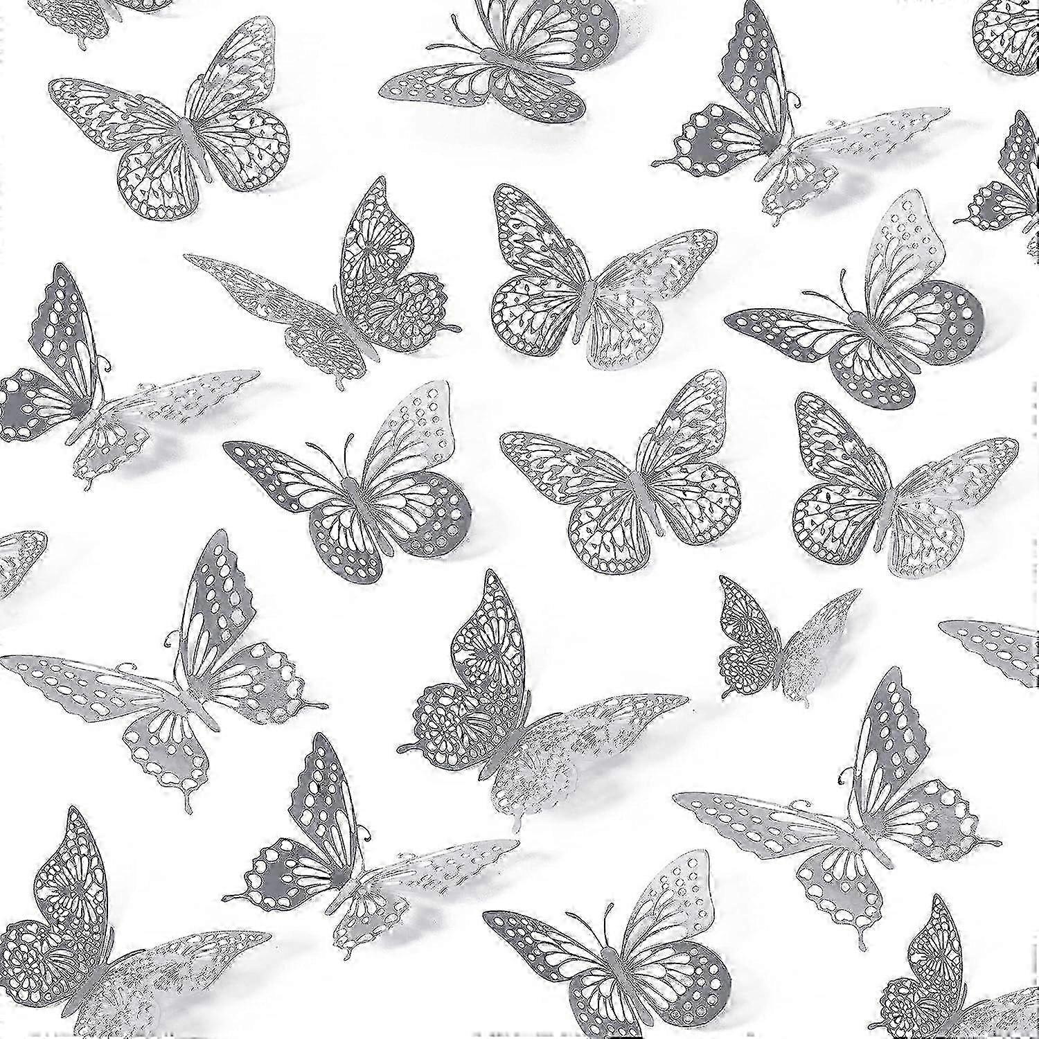 3D Butterfly Wall Decor, 48 Pcs 2 Styles, Removable Metallic Wall Sticker Room Mural Decals for Kids Bedroom Nursery