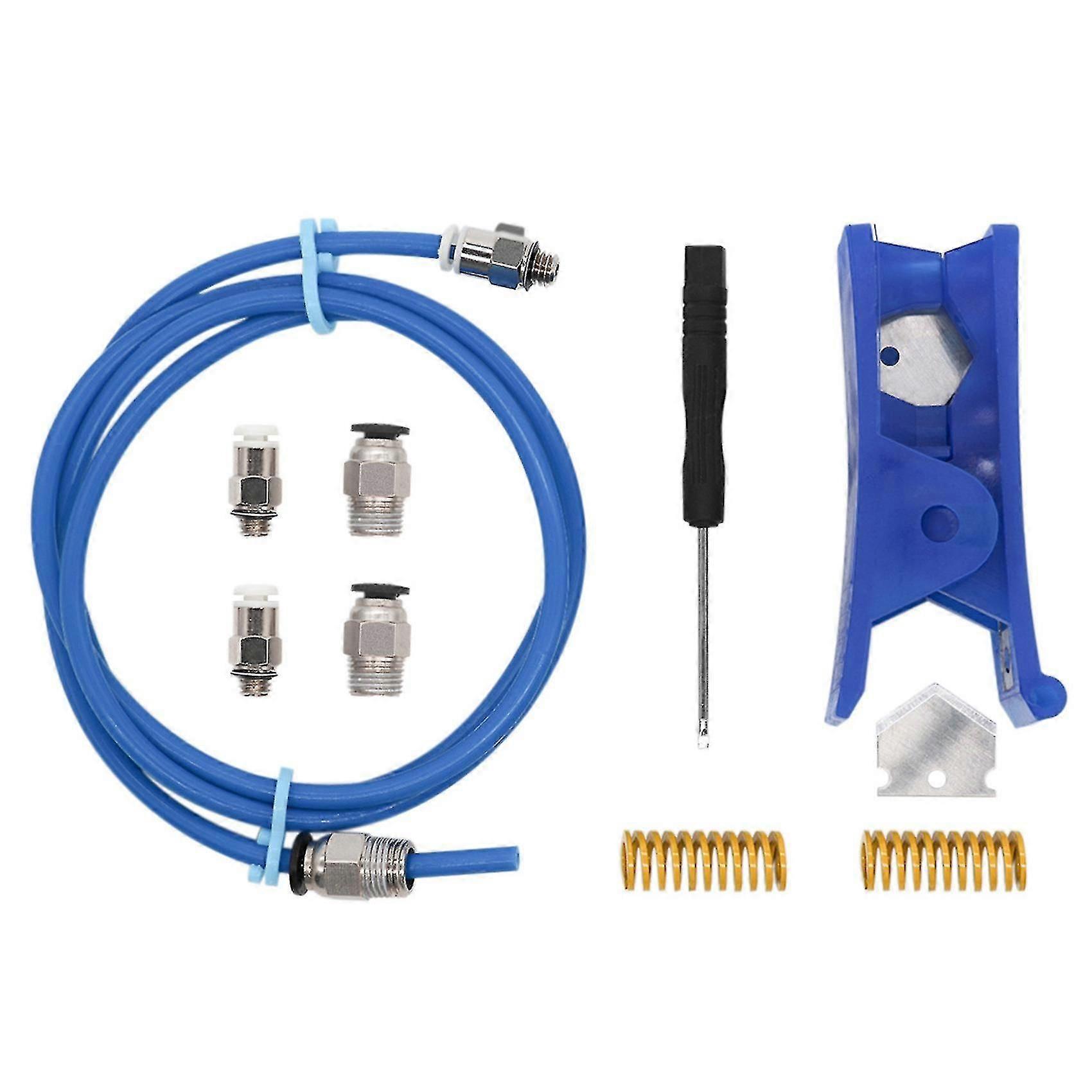 PTFE tube has excellent chemical stability and can withstand strong acids and alkalis. The temperature range is wide, and it can be applied to -60~+260 under normal pressure.PTFE tube has a very low coefficient of friction, is an excellent anti-friction, self-lubricating material, but also has aging resistance, non-stickiness and non-combustibility.The cutter adopts ABS polymer material as a whole, which has high strength and good toughness. It is integrally formed by thermoplastic, and its shape is small and portable. The frosted surface feels better.The cutter blade adopts a quick-release and replaceable design. You can replace a new blade with only one screw, which extends the working life of the cutter and is cost-effective.The cutter is equipped with a strong yellow spring, pressing and cutting effortlessly.Material:ABScolour:BluePackage Contents:3 x PC4-01 Straight Pneumatic Connector3 x KJH 04-M6 Pneumatic connector1 x 1M ID2mm OD4mm blue PTFE tube 1 x Slotted screwdriver1 x Cutter spare blade2 x Blue cable buckle2 x 10x25mm yellow strong springOnly the above package content, other products are not included.Note: Light and different displays may cause the color of the item in the picture a little different from the real thing. The measurement allowed error is +/- 1-3cm.