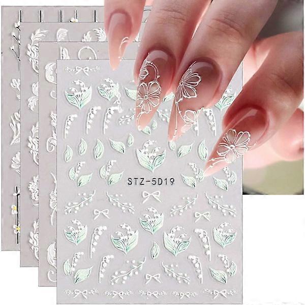 3D feather flower nail stickers 4 sheets nail art stickers decals self-adhesive nail art sticker nail decoration nail accessories