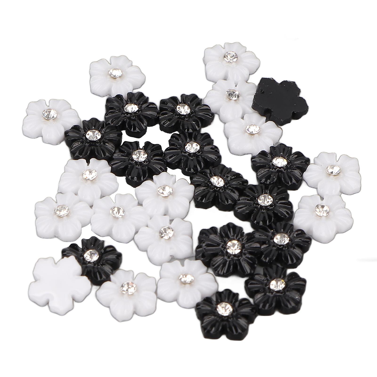 3D Flower Nail Art Decorations Black White 5-Petal Flower Nail Ornaments for DIY Nail Decoration