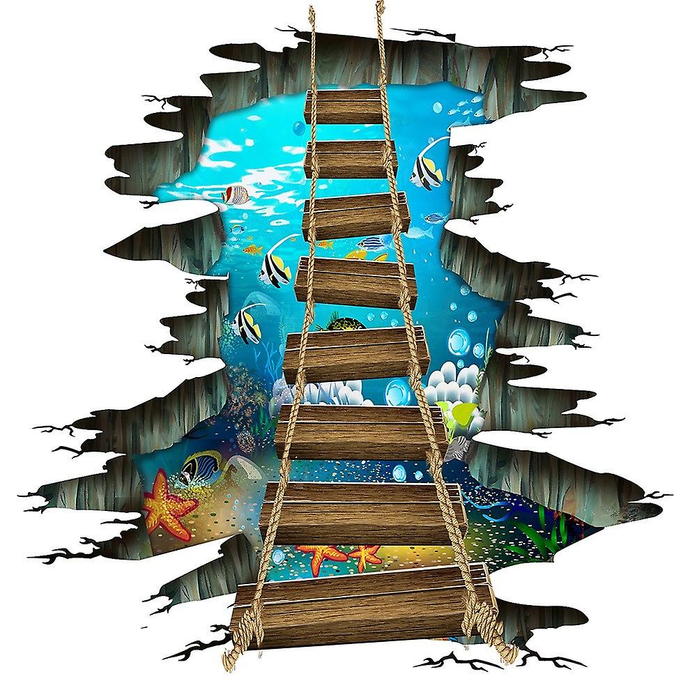 3D Floor Sticker, Underwater Sea World Starfish Colorful Fish Detachable Love Ocean Cute Wooden Susp