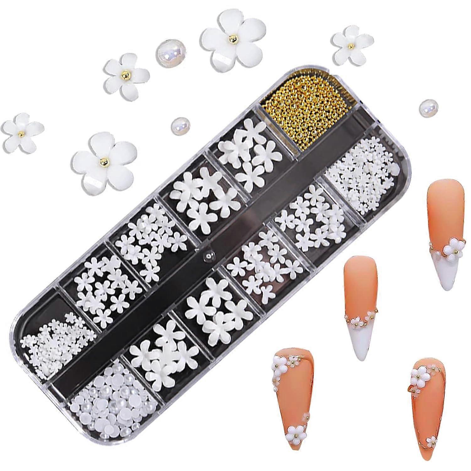 3D Floral Nail Art Charms Set Glitter White Flowers Pearl Nail Art Golden Caviar Beads Nail Decoration Acrylic Nail Art Stud