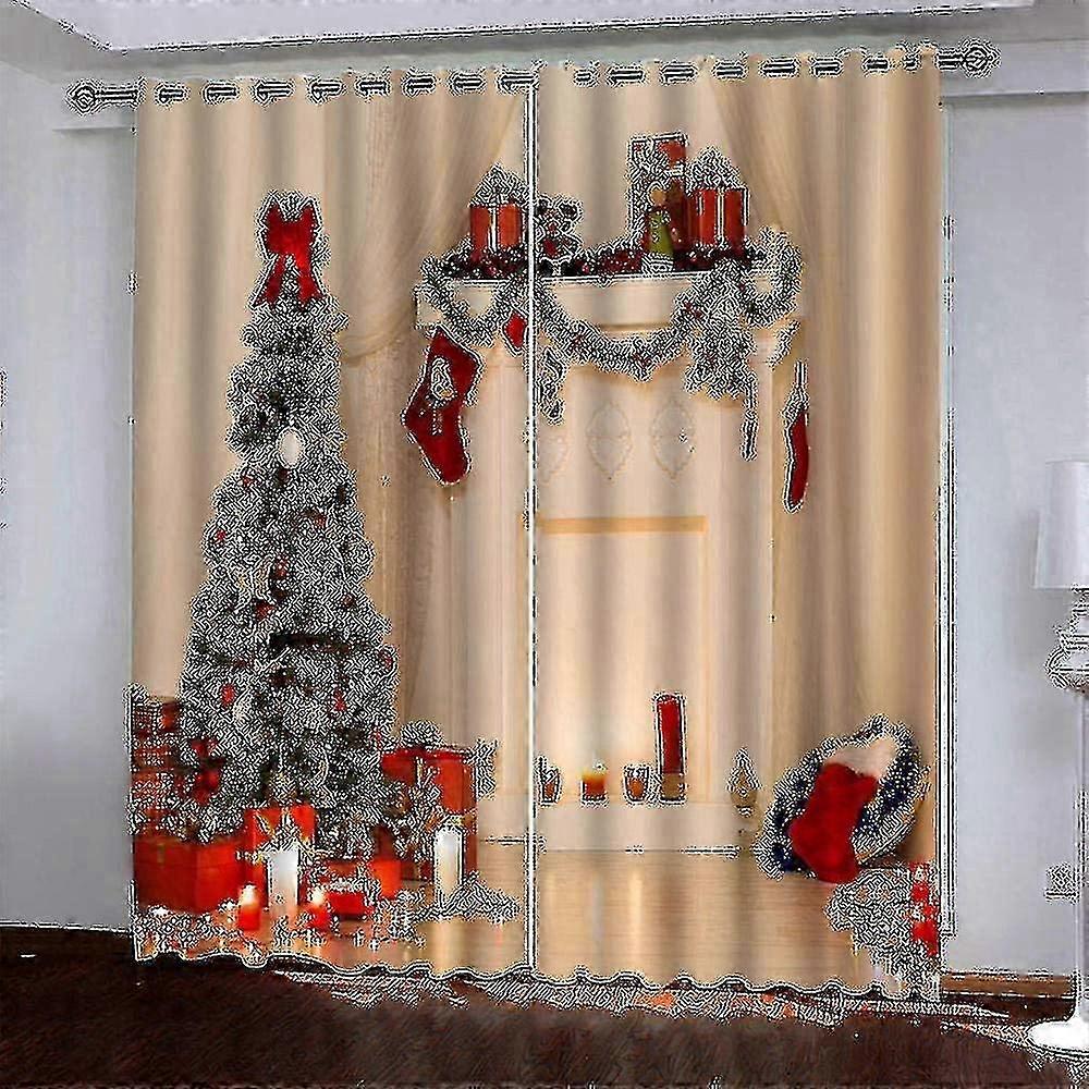 3d Polyester Fiber Printing Curtains, Christmas Tree Pattern, Shading And Noise Reduction, Living Room Decoration