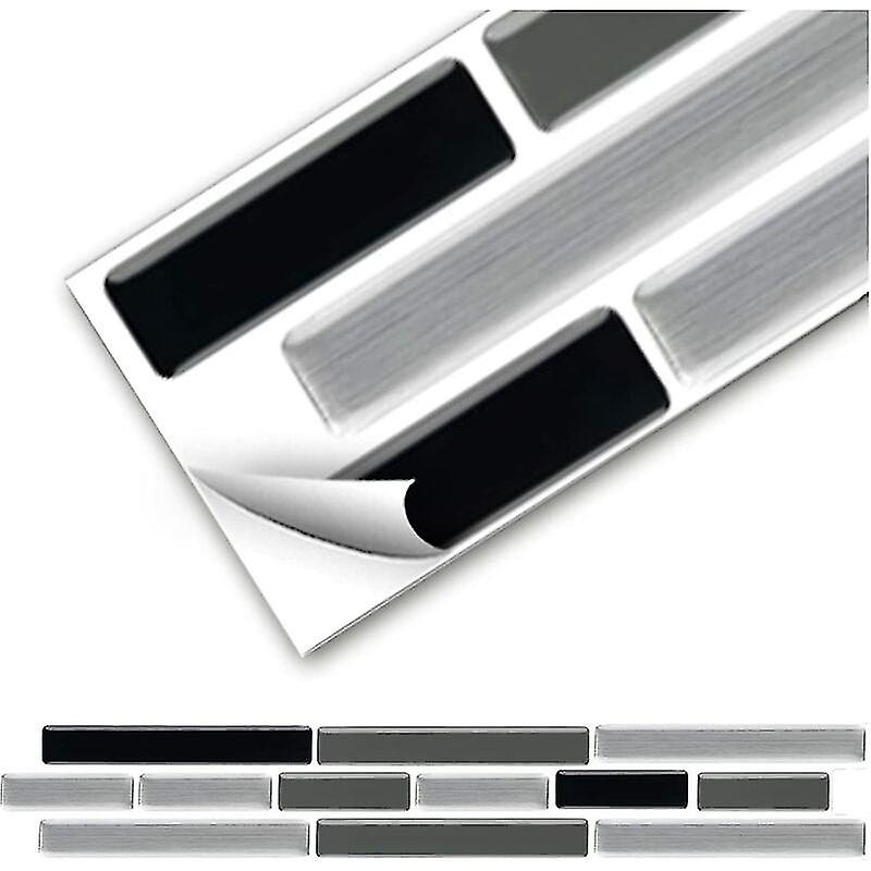 3d Mosaic Tile Sticker Self Adhesive Kitchen Bathroom Wall Stickers Decorative Tiles Film Black Gray Silver Brick 11x9.25inch (6 Sheets)