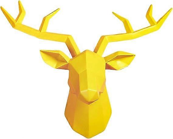Fake stag head wall decoration: a geometric design style, made of resin, hand polished and painted, a solid product with a cool colourway. This is a highly detailed piece of art. The geometric design and bronze picture frame create a beautiful wall sculpture. The best choice for a fashionable 3D decoration in your home. Ideal as a housewarming gift, especially for deer lovers.Deer head wall mounting size: medium: 13.39 x 11.02 inches. Material: Resin Production process: handmade, resin processing. Colour: black, white, yellow, pink. Style: medium Functions: Housewarming Gift, Home DecorGeometric Stag Head Sculpture: an exquisite creative sculpture. Several important improvements in the sculpture create a better effect. Manual colouring, finely tuned fit and meticulous execution. Complies with the aesthetics of geometric art with spatial effect and careful material selection. Easy to assemble the stag head wall decoration: simply insert the antlers into the hole on the top of the head.Deer head wall decoration: perfect wall decoration. This geometric design stag head is ideal for any living room, bedroom, hotel, bar and office. Add a unique touch to your home with this sculpture. Special symbolism: "Stag" sounds similar to "Lu", which means happiness, prosperity and joy. An ideal gift for a move, especially for deer lovers.QUALITY GUARANTEE: Order our products with confidence. Our products undergo rigorous quality testing before leaving the factory and are checked again before shipping. If you have any questions, please let us know. We provide reliable customer service and find a solution within 24 hours. You won't waste your money.Description:MODERN STYLE: The 3D deer figure has a solid geometry model.ELEGANT DESIGN: Creative design, exquisite appearance. Back faux deer sculpture, artfully made of resin, durable.Material: resinSize Chart: 38 cm x 29 cm x 13 cm / 96 inches x 11.42 inches x 5 inchesPackage Included:1 x 3D Resin Deer Head Sculpture
