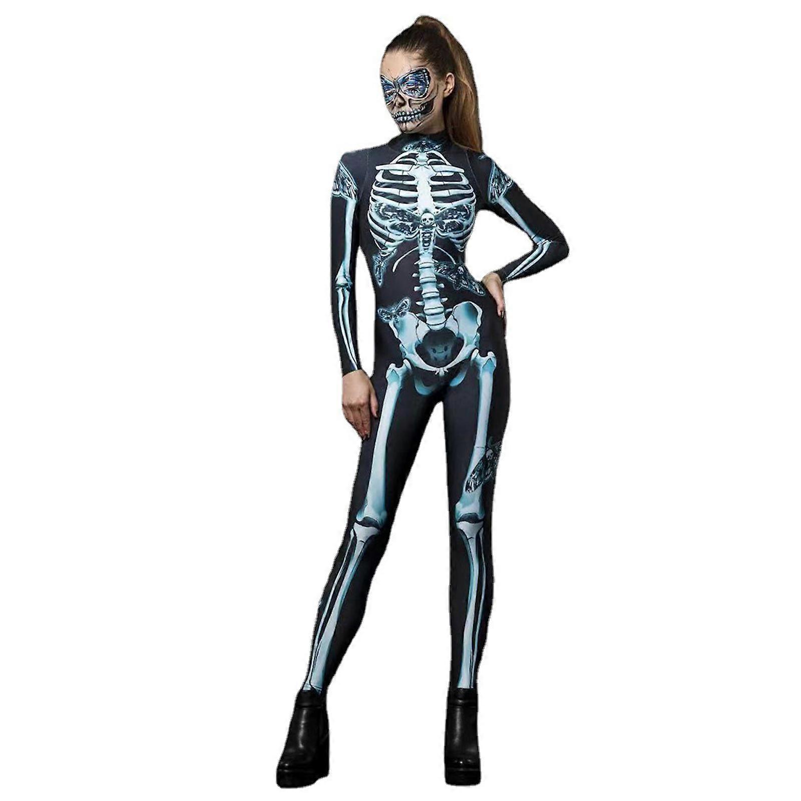 3D Womens Skeleton Halloween Costumes Cosplay Jumpsuit Bodysuit