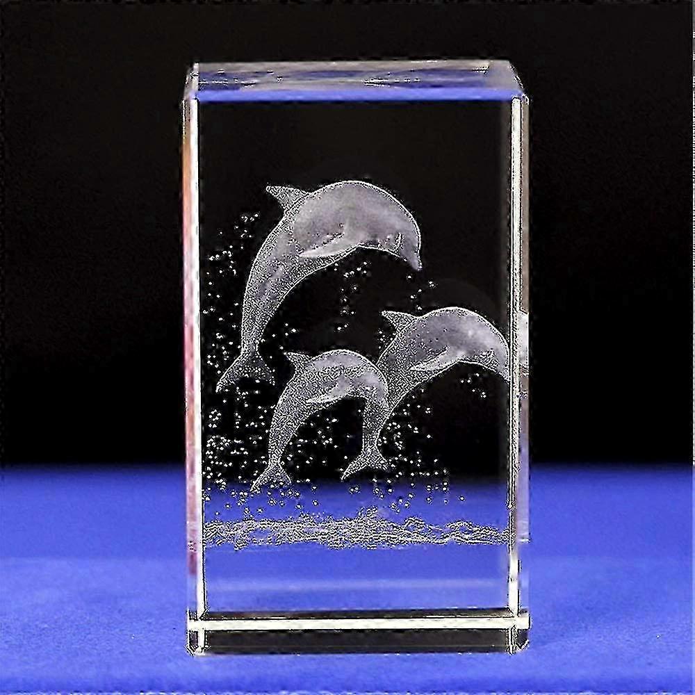 3D Laser Etched Crystal Glass Dolphin Figurine, Home Decor Ornament