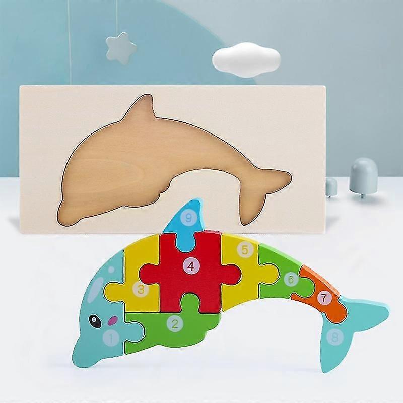 3d Wooden Puzzle Children's Educational Toy Car Animal Number Matching Puzzle Game-(dolphin)