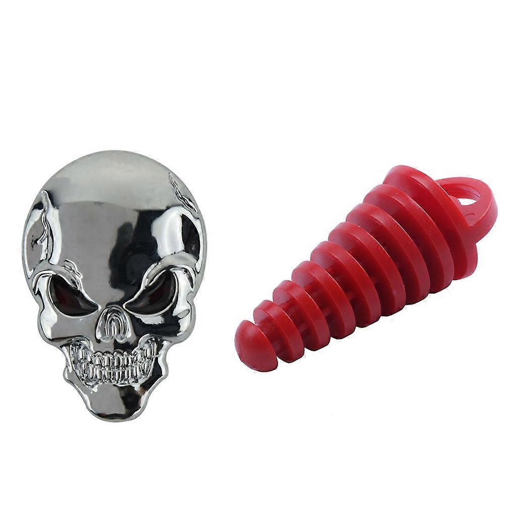 set2: 1 x Exhaust Plug + 1 x 3D Skull Skeleton Sticker and high quality Punk 3D Skull Skeleton Badge Sticker Tapered Fit (27mm - 47mm),measure the inner diameter of your exhaust muffler for proper fitment. Universal fit for most 2-Stroke and 4-Stroke Motorcycle and ATV QUAD applications. Keeps water and moisture and foreign objects from entering your exhaust. Prevents humidity from entering the pipe as it cools down and condensation inside the pipe during storage. Seals the exhaust while washing your ATV or Motorcycle. Color: Silver/Red Material: Zinc alloy/Rubber Size: 5 cm x 3.5 cm Size: 8.7x3.8cm Fitment: Universal fit for most 2-Stroke and 4-Stroke Motorcycle and ATV QUAD applications Package Contents: 1 x Exhaust Plug 1 x 3D Skull Skeleton Sticker Only the above package content, other products are not included. Note: Light and different displays may cause the color of the item in the picture a little different from the real thing. The measurement allowed error is +/- 1-3cm.