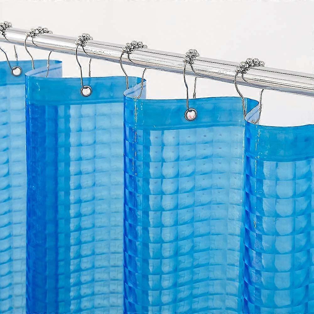 3d Eva Heavy Duty Blue Shower Curtain Liners Set For Bathroom With 12 Plastic Hooks,waterproof 72x72 Inc