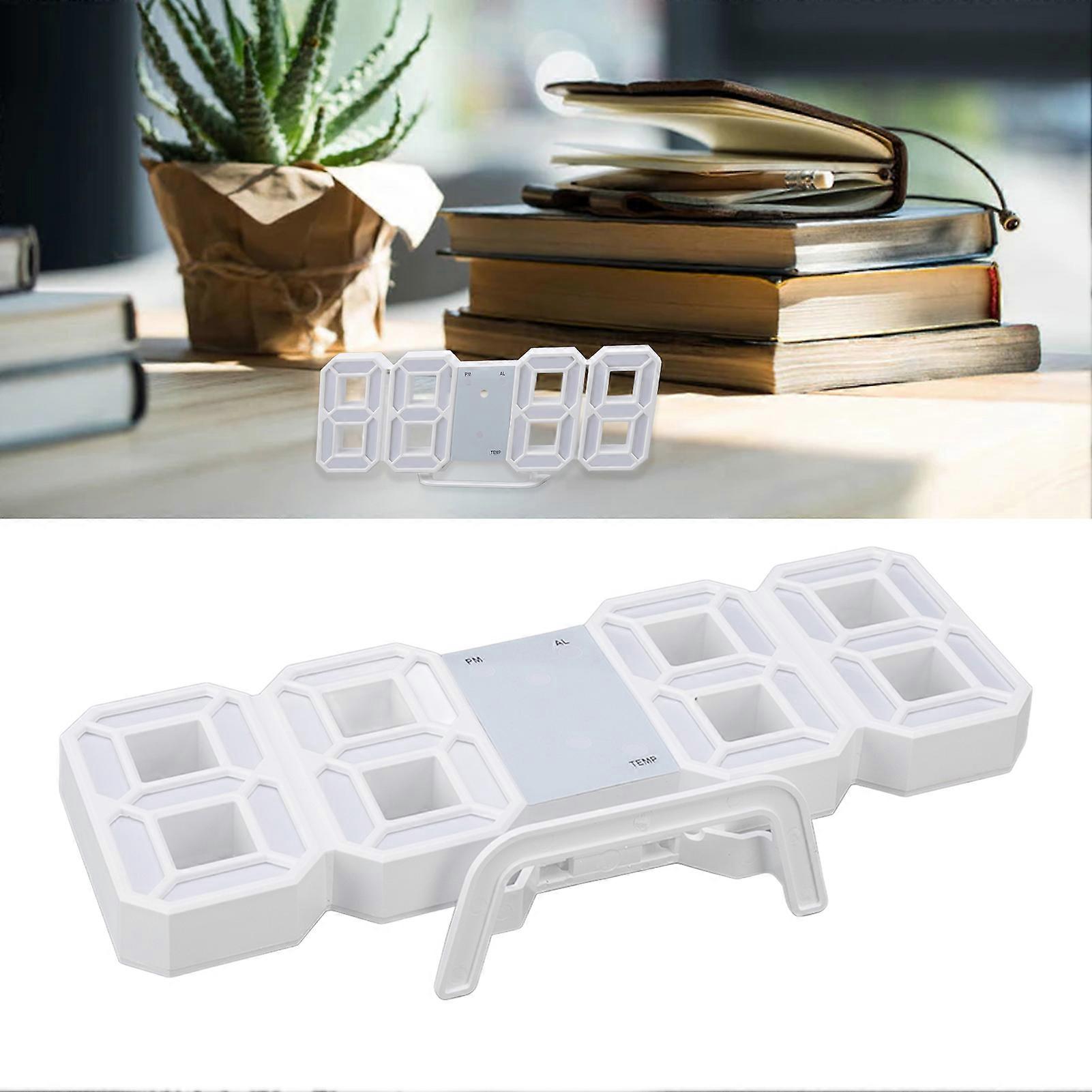 3D LED Digital Clock Time Temperature Display Night Light Alarm Function White 3D Digital Clock for Home Regular Version