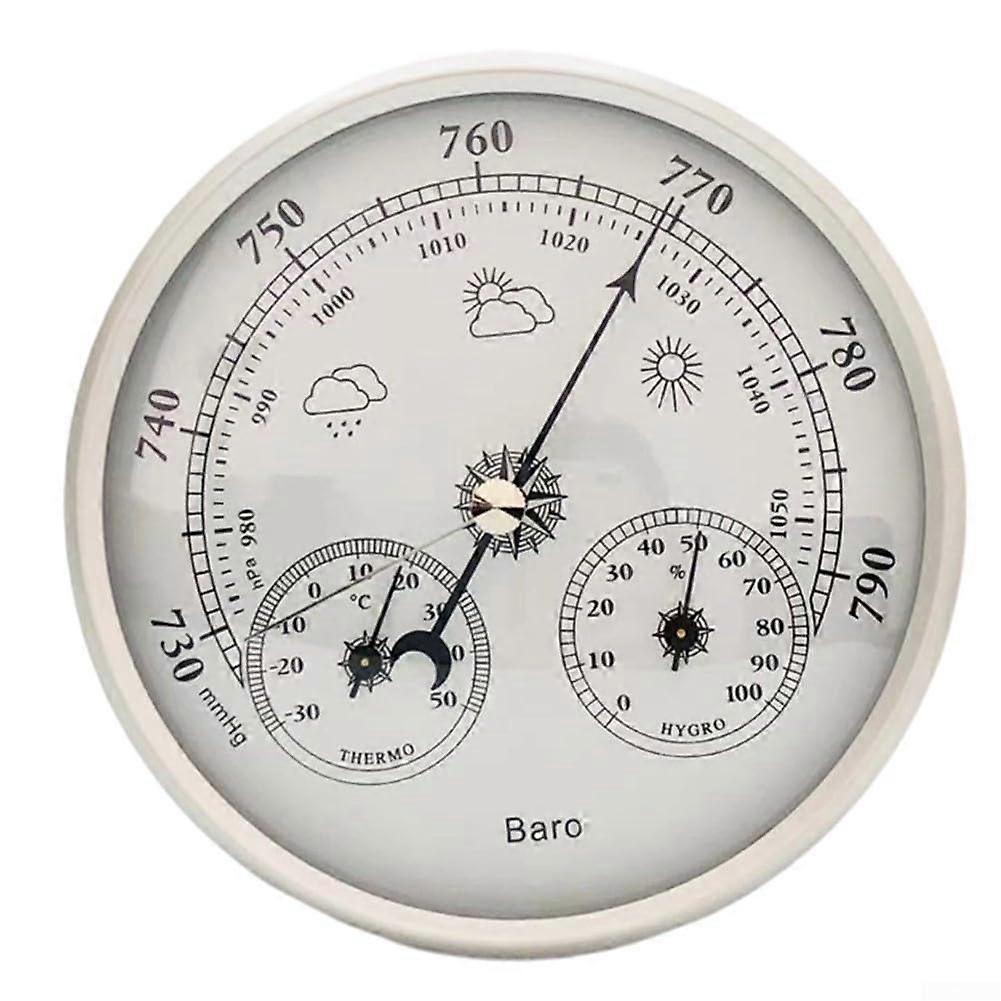 1. Comprehensive weather monitoring This 3in1 weather station measures temperature, humidity, and atmospheric pressure, so you stay informed about environmental changes. 2. Stable and reliable construction: Made from aluminum, this device ensures durability and reliable performance in any environment. 3. Easy reading The clear display provides easily readable metrics, making it equally suitable for casual users and weather enthusiasts. 4. Size reminder Product size is 130 mm; please check your space before purchasing.