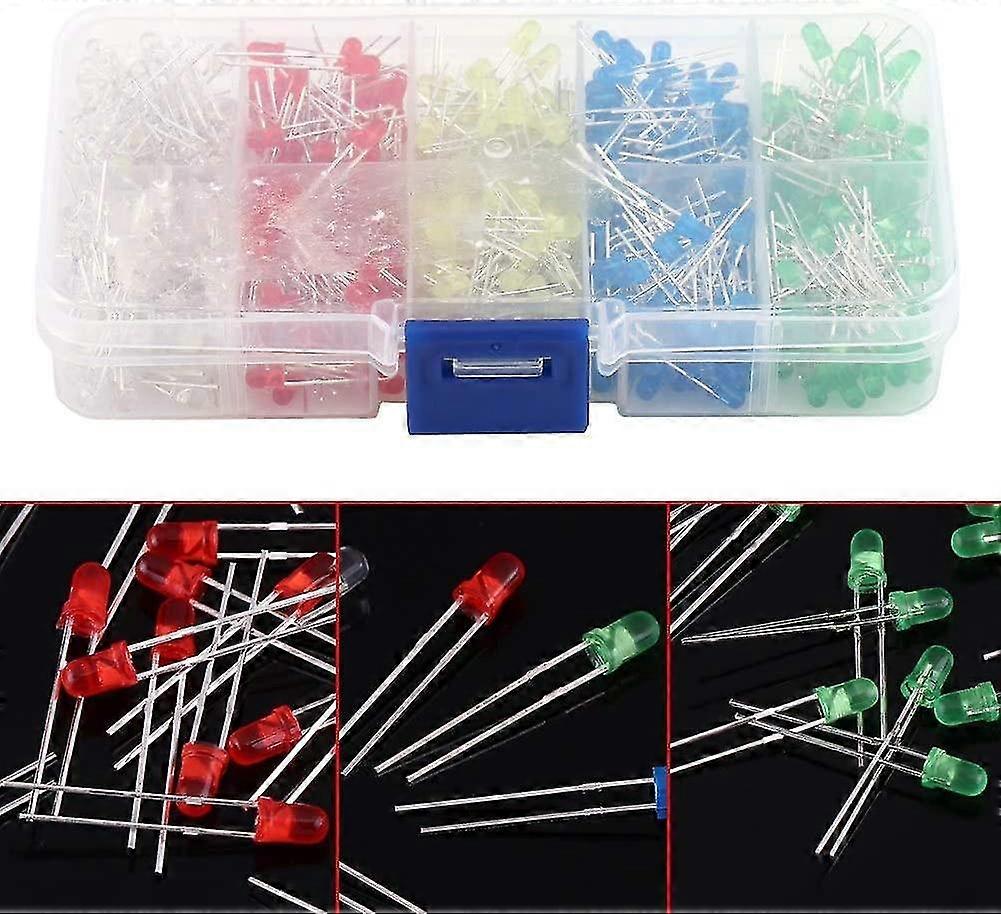 3mm Color Diode,akozon 500pcs 3mm 5mm Led Light Emitting Diode Set,electronic Components Assortment Kit,round & 5 Colors