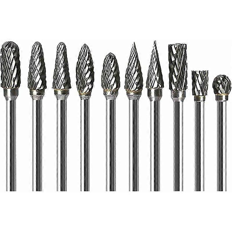 3mm Shank Rotary Burrs Steel Metal Burrs for Rotary Tools Diamond Grinding Drill Milling Cutter Aluminum Steel Tungsten Carbide Shank Drill Bit 10pcs-