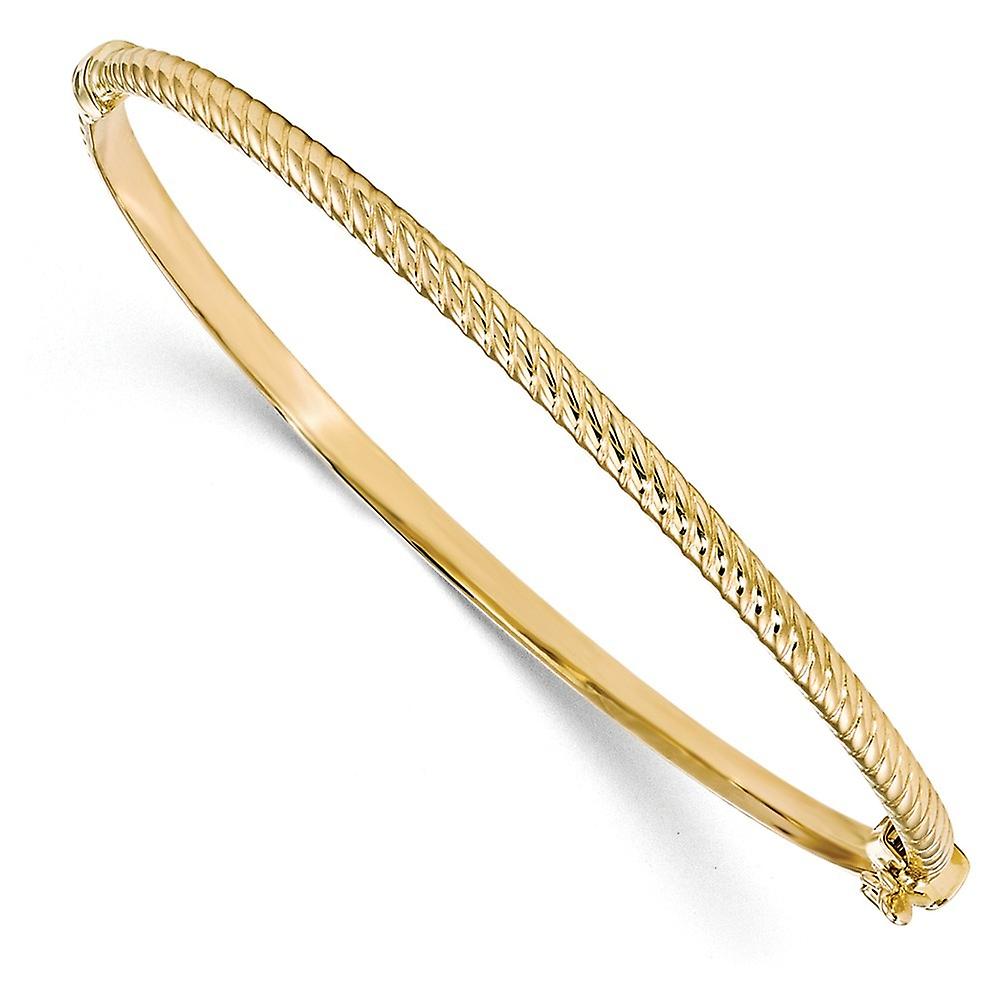 3mm 10k Solid Yellow Gold Fold over Polished Textured Bangle Bracelet Cuff-Bracelet for Women