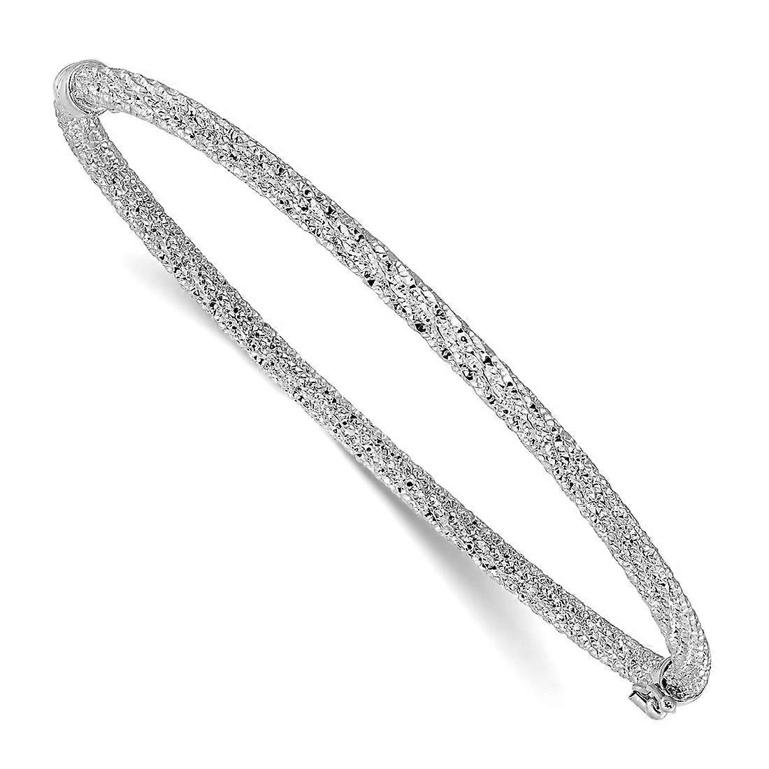 3mm 14k With Rhodium Plat Polish Texture Sparkle Cut Twist Hinged Bangle Bracelet Cuff-Bracelet for Women