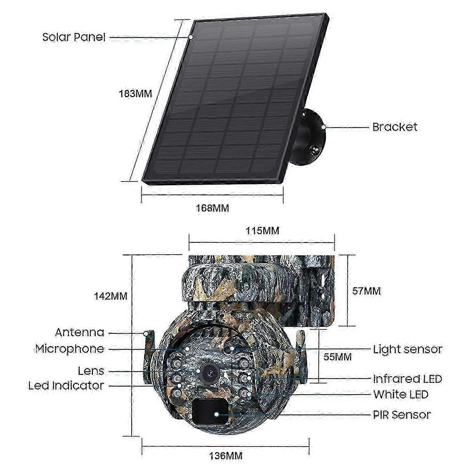 3MP 4G Solar Powered Camera Outdoor WIFI Wildlife Trail Camera Waterproof Infrared Night Vision Motion Activated(C)