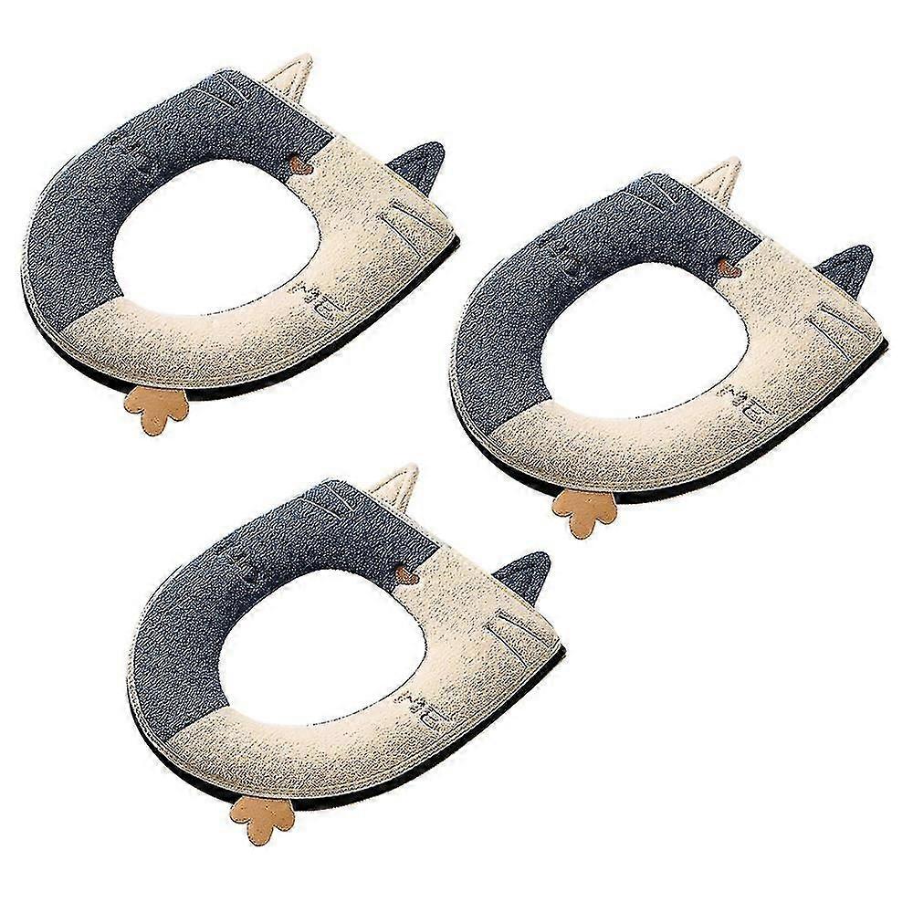 3pcs Bathroom Toilet Seat Cover Cute Cat, Soft Thicker Warmer Washable Cloth Toilet Seat Cover Pads With Zipper