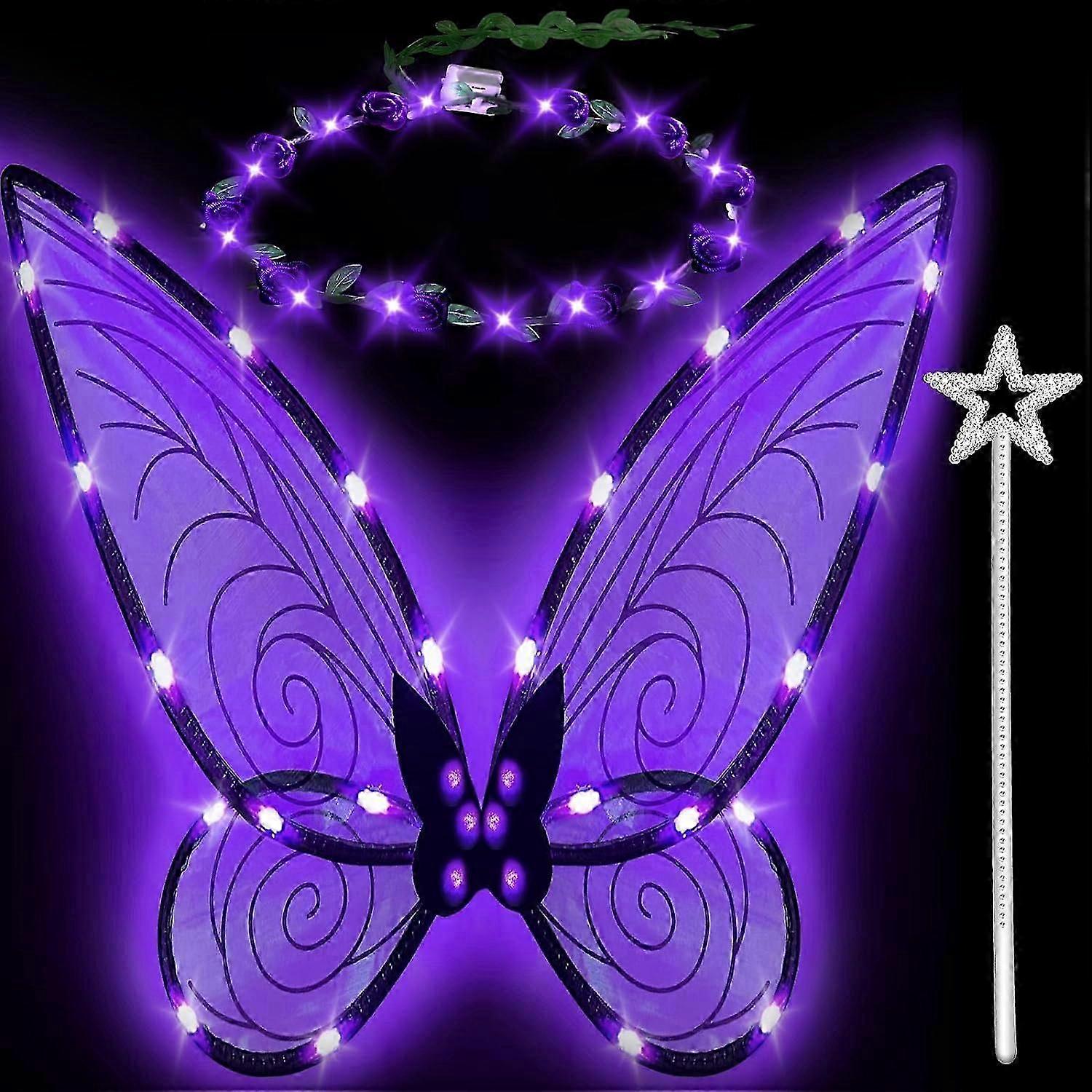 3pcs Light up Fairy Wings for Adults,LED Butterfly Wings for Girls,Angel Wings Halloween Costume Dress Up for Kids