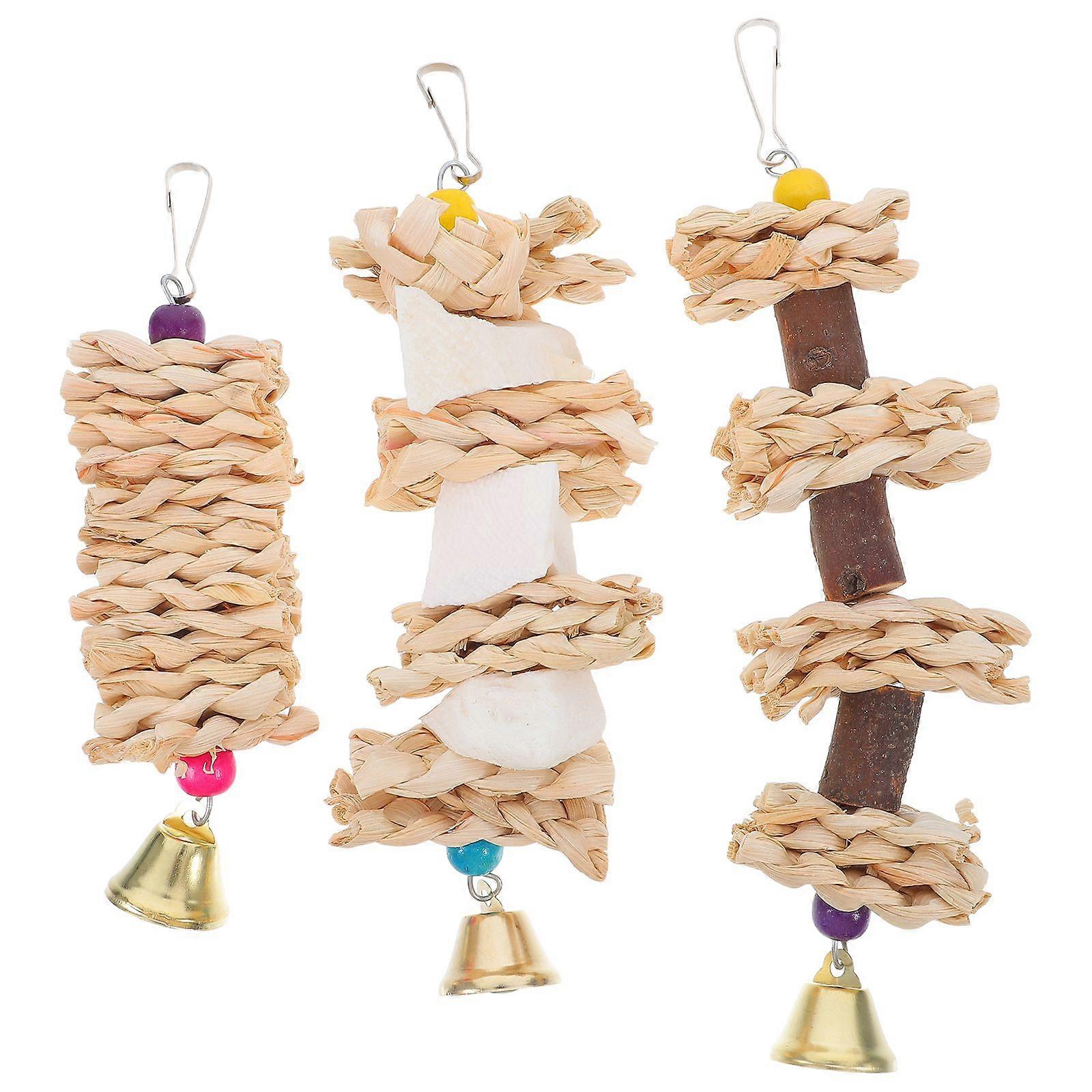 3pcs Parrot Chew Toys Natural Straw Woven Hanging Bird Toys For Parakeets Bird Cage Supplies Safe Chewing Plaything Bird Biting Toy