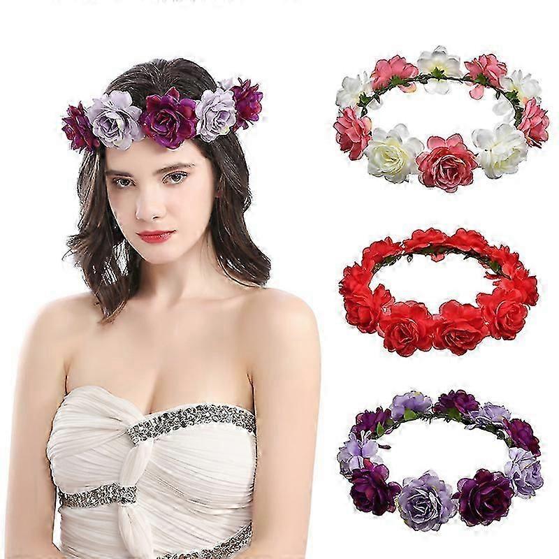 3pcs Garland Crown Rose Realistic Cloth Chic Artificial Floral Headpiece Festival Wedding Hair Wreath Floral Crown,18cm