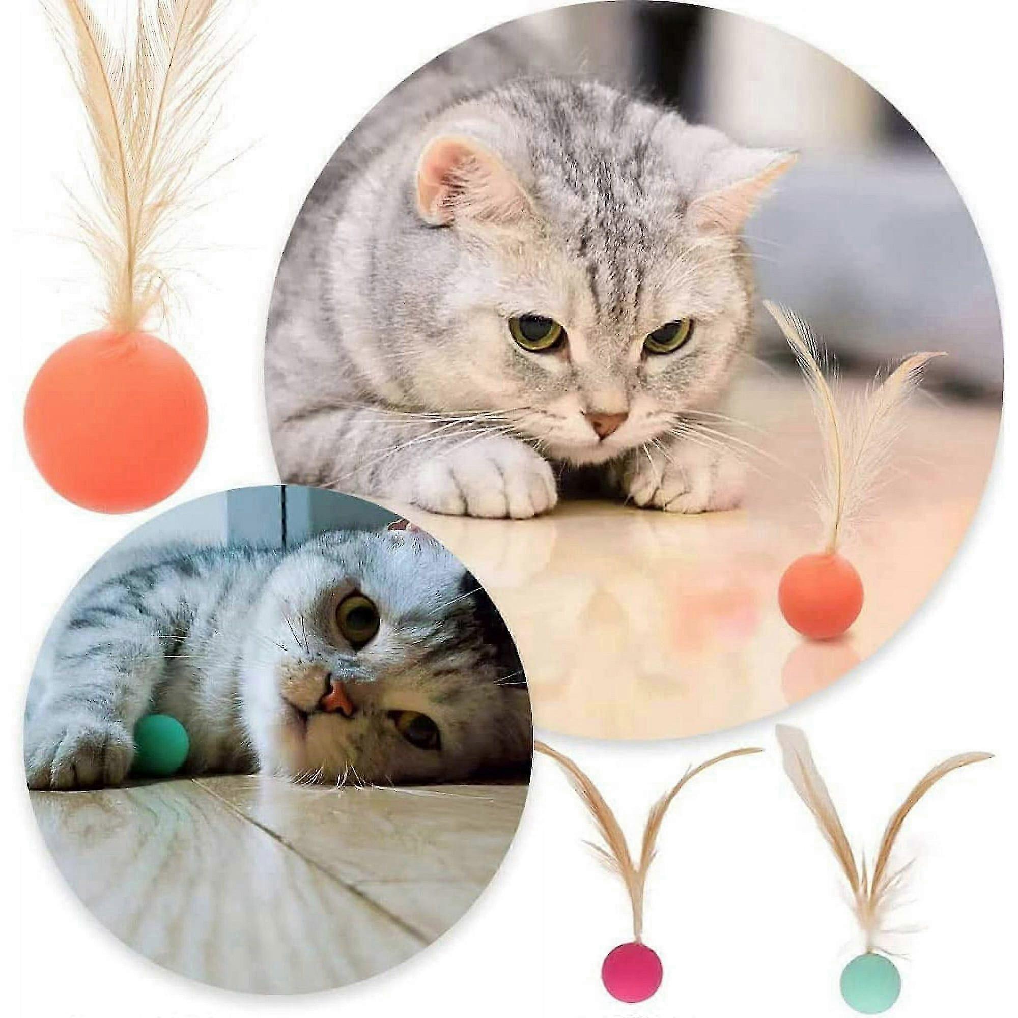 3pcs Cat Balls Toy With Feathers Cat Toys Bouncy Balls for Indoor Interactive Cats Soft Kitten Toys